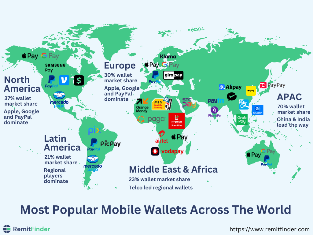 Now that we have established an understanding of what mobile wallets are and how they work, let us look at the world's most popular mobile wallets. We will segment them by major continents and regions of the world.